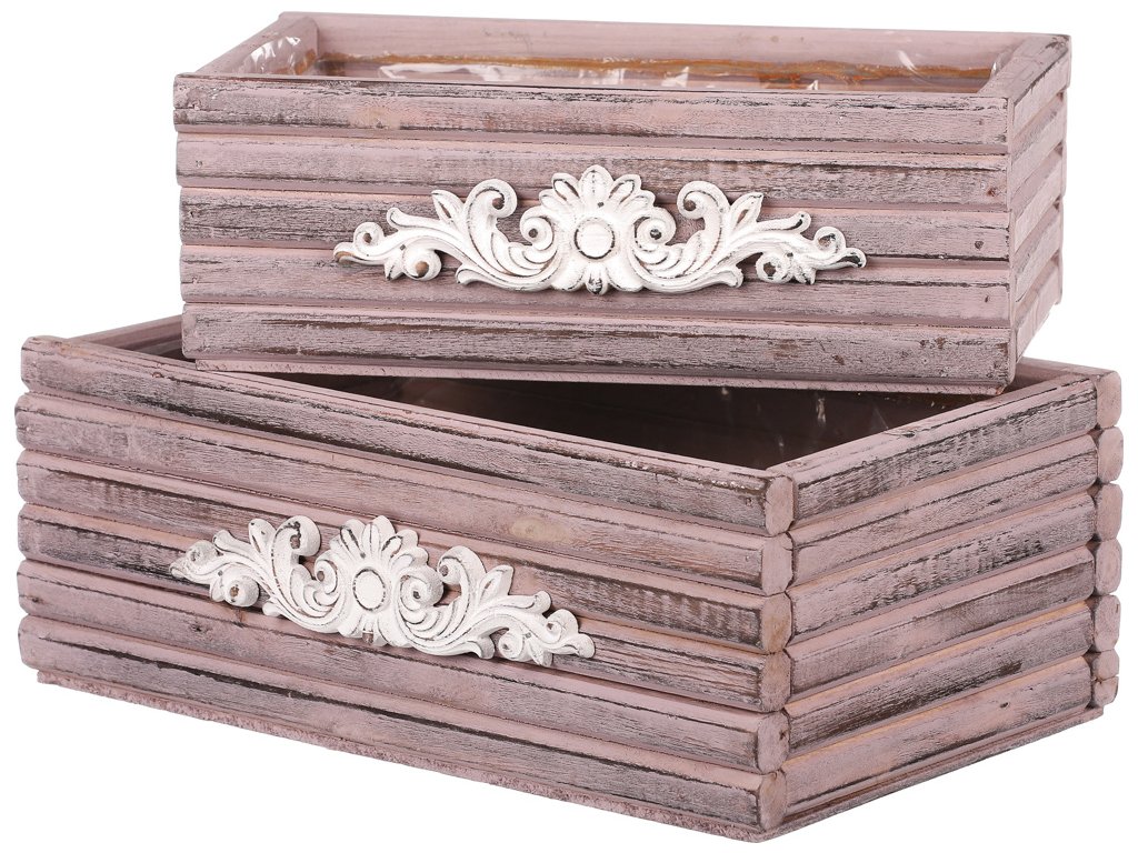 Obal na květiny dřevěný - tvar šuplíku, fialový, cena za sadu 2 ks. AB2164-LILA