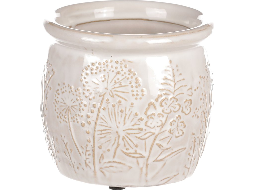 Keramický obal na květiny s dekorem lučního kvítí je skvělým prostředkem, který umocní krásu vašich květin, či jiných ozdob v ní umístěných. Obal je zcela nepropustný, a když je třeba, zadržuje vodu a chrání okolní prostředí před vlhkostí. Naopak rostlinám poskytuje lepší podmínky, takže i řezané květiny vydrží delší dobu v dobré kondici. Váš interiér tím obohatíte o vkusný dekorativní prvek, který bude plnit estetickou i praktickou funkci na jedničku.
