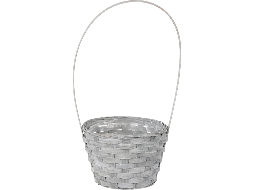 Obal na květiny - kulatý, bambusové proutí, igelitová vložka, šedý XJ7008 GREY