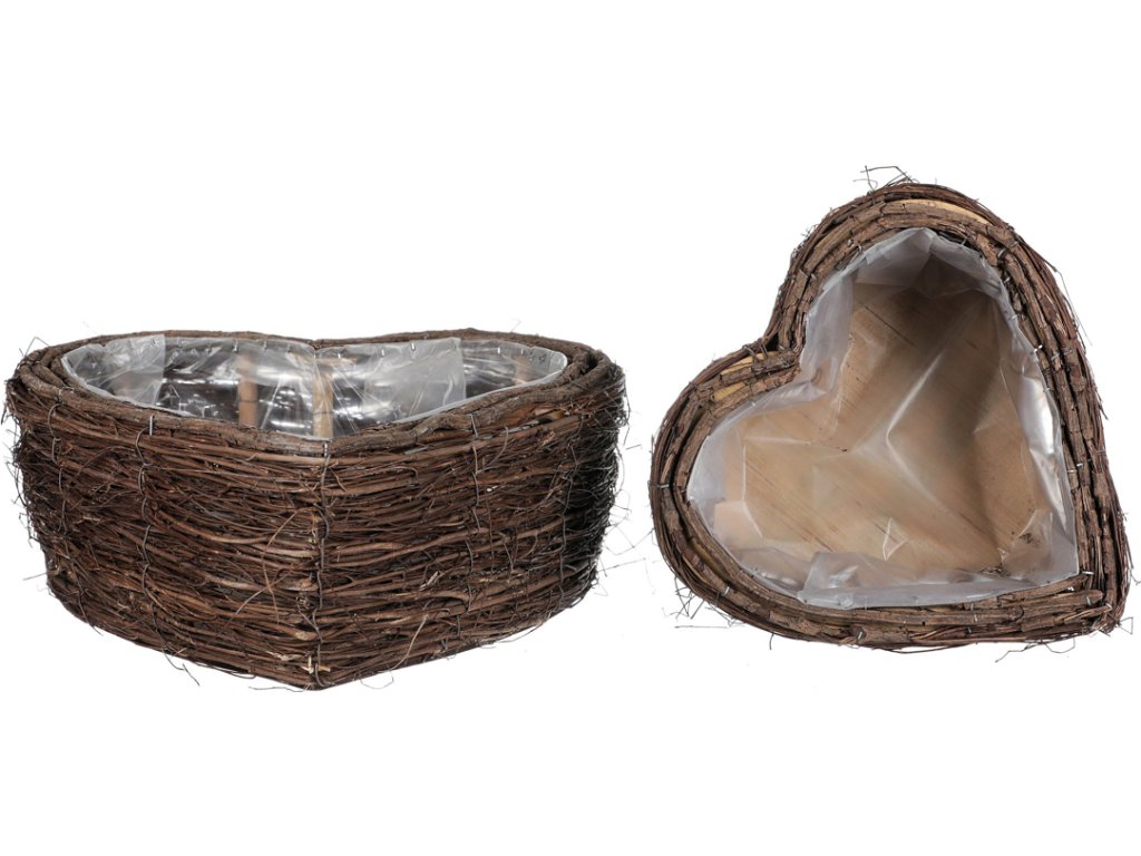 Máte slabost pro přírodní materiály a rádi si zdobíte svůj domov či jiné oblíbené místo krásnými květinami? Pak bude pro vás jasnou volbou právě tento obal na květiny z révového proutí ve tvaru srdce. Nabízí dostatek místa pro nejrůznější paletu rostlin a dalších přízdob k nim. Tato dekorace navozuje dojem unikátní ruční práce a lásky se kterou byla vyrobena, což jí přidává na hodnotě a jedinečnosti. Součástí produktu je také igelitová vložka, která slouží k udržení vlhkosti a ochraně povrchu před přímým kontaktem s vodou. Přineste si do svého prostoru přírodní krásu a rustikální vzhled prostřednictvím tohoto výjimečného proutěného obalu na květiny.