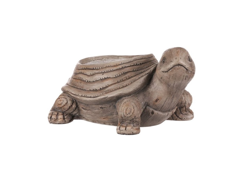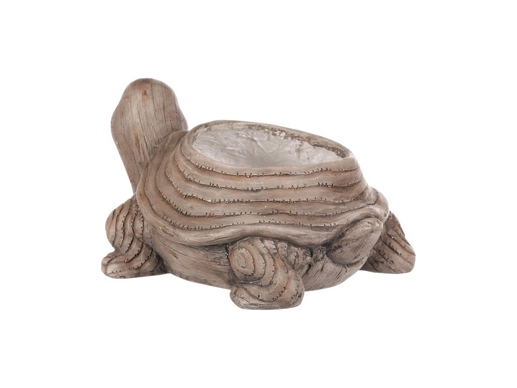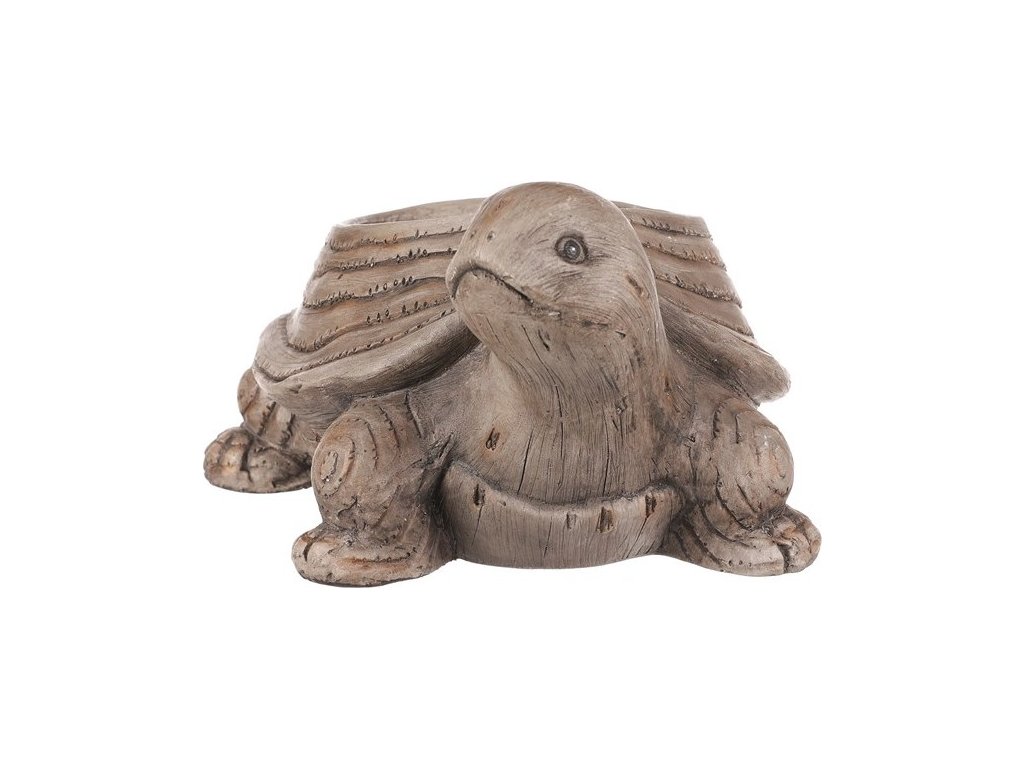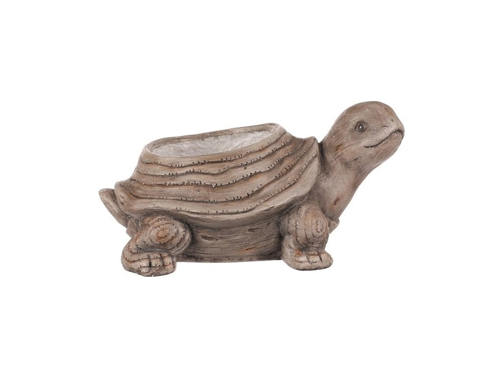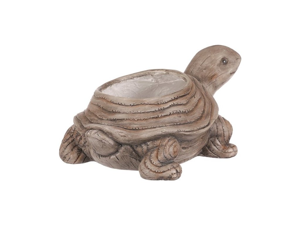Obal na květiny z magneziové keramiky v podobě želvy s imitací dřevěného povrchu je ideální ozdobou pro oživení vaší zahrady, terasy případně interiéru. Povrch je v jednobarevném šedohnědém provedení věrně kopírující kresbu dřeva. Želva tak doslova klame tělem a při pohledu na ni jen stěží uvěříte tomu, že je právě z keramiky. Zvolený zvířecí motiv obohatí váš prostor o elegantní dekorativní prvek s možností výsadby rostlin. Jen si představte tu krásu, kdy ji budou zdobit nádherné květiny a společně budou tvořit neodolatelný harmonický celek. Stačí už jen vybrat místo, kde bude vystavena obdivu pozorovatelů a vám bude činit radost a potěšení.