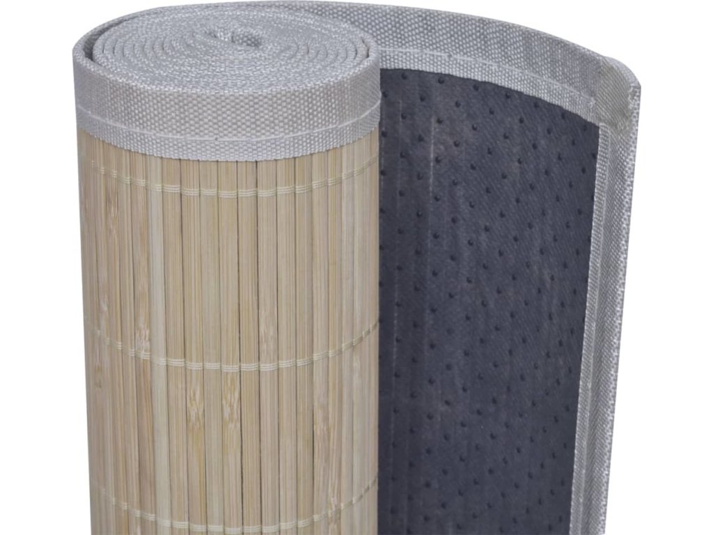 Spodní strana bambusového koberce je podložená neklouzavou vrstvou z PVC, která poskytuje nejen vynikající tlumení, ale navíc udržuje koberec na místě. Polypropylenové okraje dodávají bambusové rohoži pečlivě dokončený vzhled. Koberec je vyrobený z přírodního pevného bambusu a snadno se čistí.