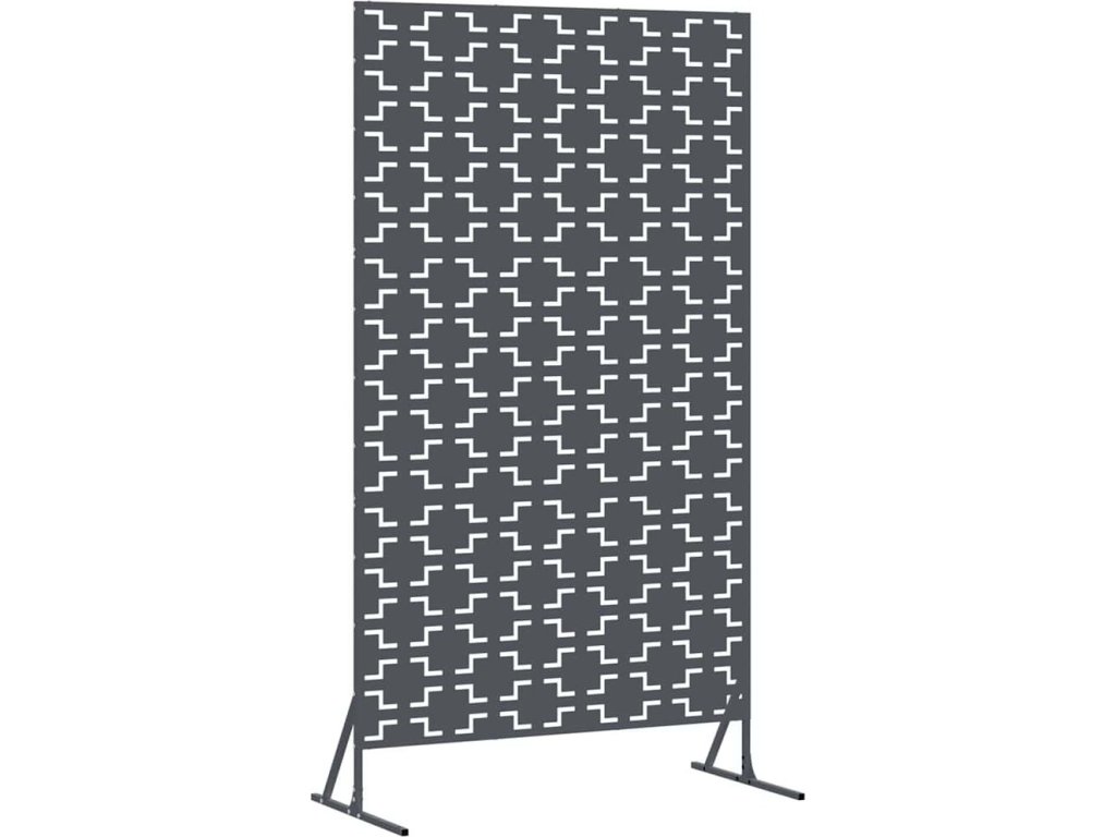 Tato zahradní clona nabízí moderní a stylové řešení pro venkovní soukromí. Její obdélníkový tvar a elegantní linie ji činí perfektním doplňkem do zahrad a na terasy. Díky své robustní konstrukci chrání vaše venkovní prostory před zvědavými pohledy a větrem, a dodává klidnou atmosféru pro relaxaci nebo zábavu s přáteli.