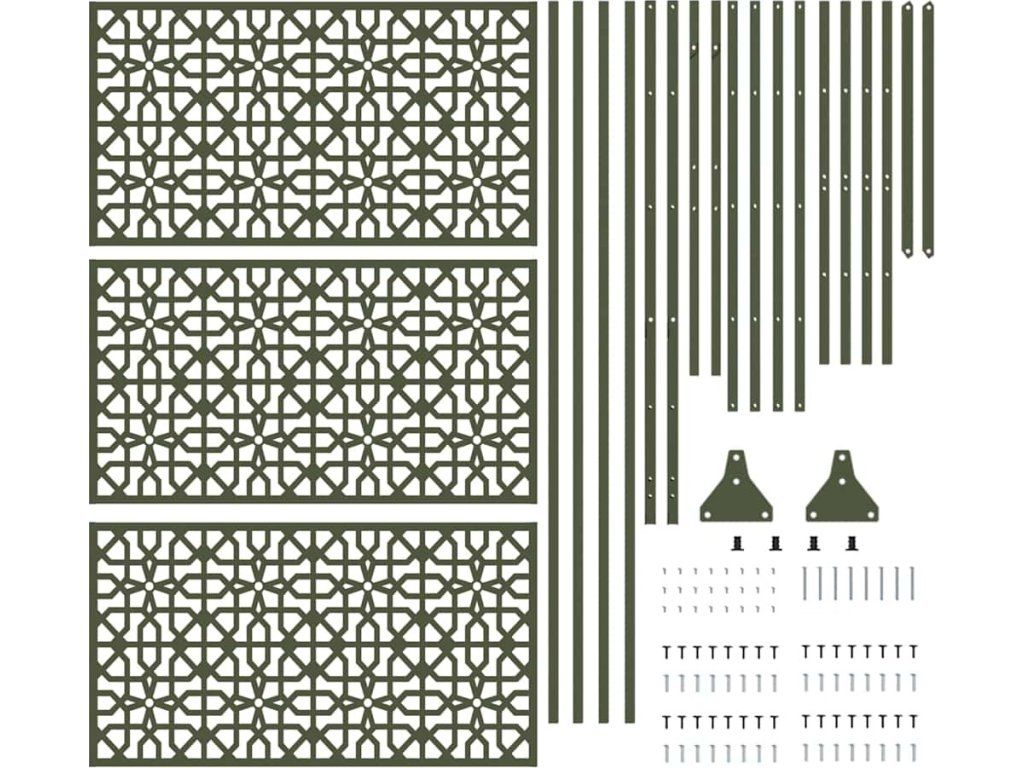 - Materiály: Tato zahradní clona je vyrobená z vysoce kvalitní oceli, která je odolná a dlouho vydrží. Materiál odolává povětrnostním vlivům a udržuje si pěkný vzhled, takže vaše zahrada bude stále v perfektním stavu i při různých povětrnostních podmínkách.