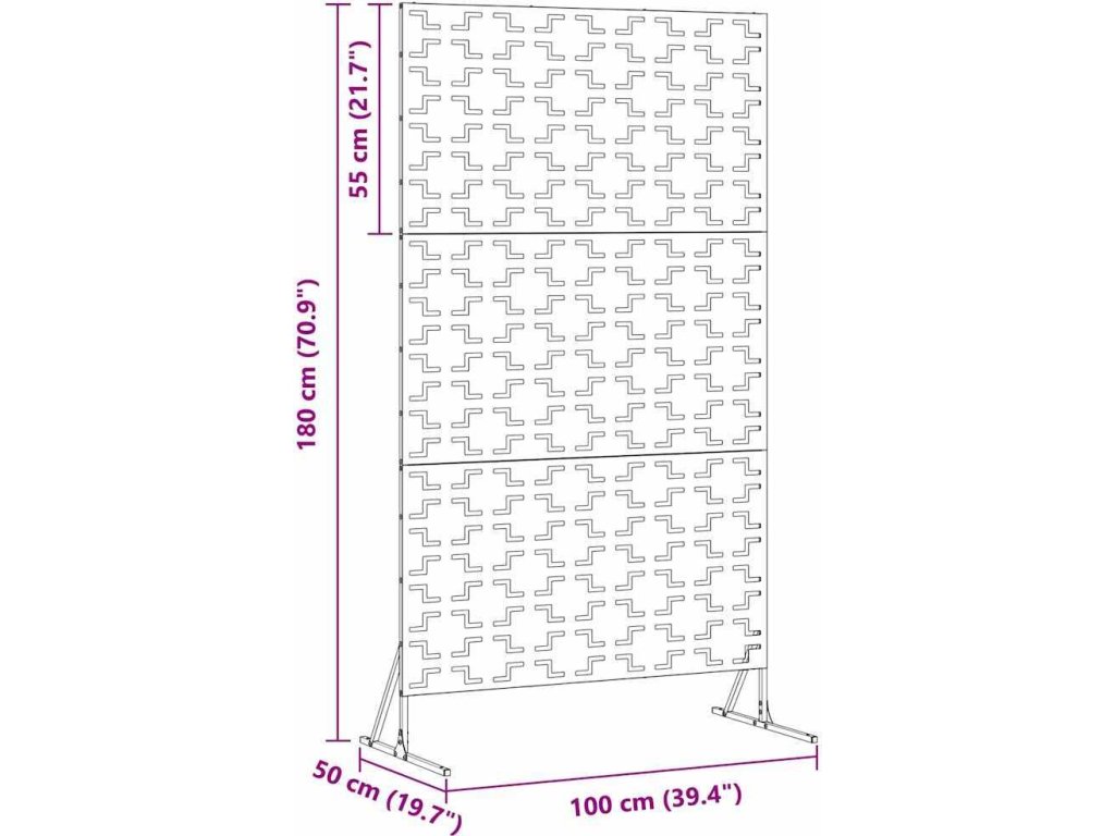 - Materiály: Tato zahradní clona je vyrobená z vysoce kvalitní oceli, která je odolná a dlouho vydrží. Materiál odolává povětrnostním vlivům a udržuje si pěkný vzhled, takže vaše zahrada bude stále v perfektním stavu i při různých povětrnostních podmínkách.