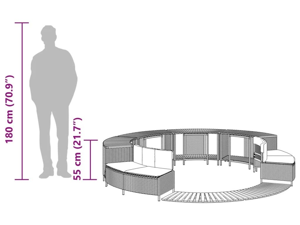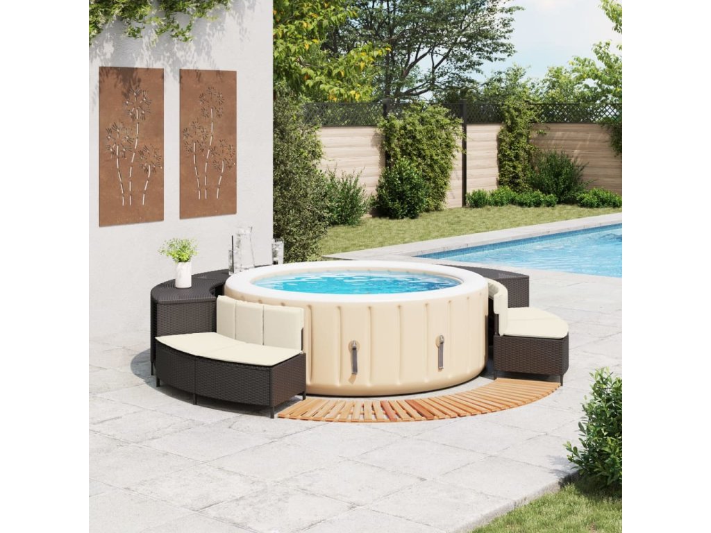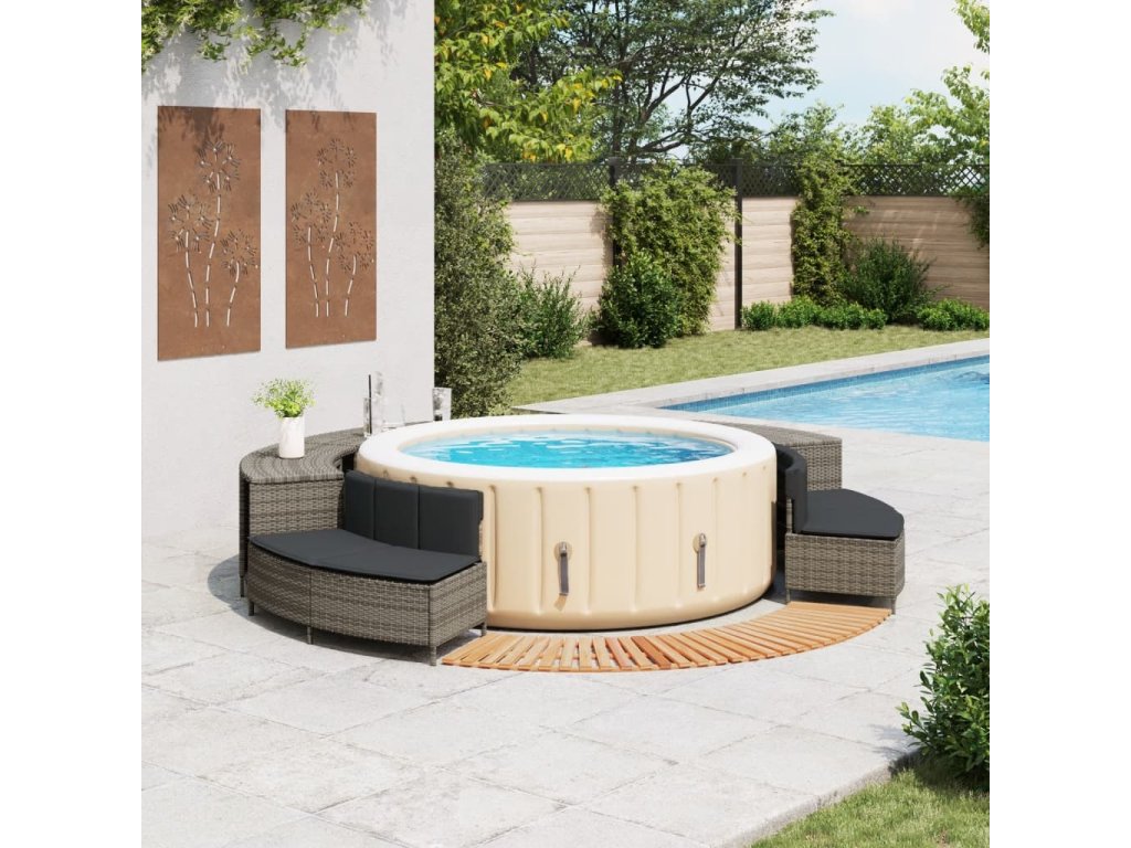- Multifunkční: Díky úložným regálům, dřevěným obrubám a zahradním lavicím vytváří tento nábytek funkčnější a uživatelsky přívětivější prostor kolem vířivky.
