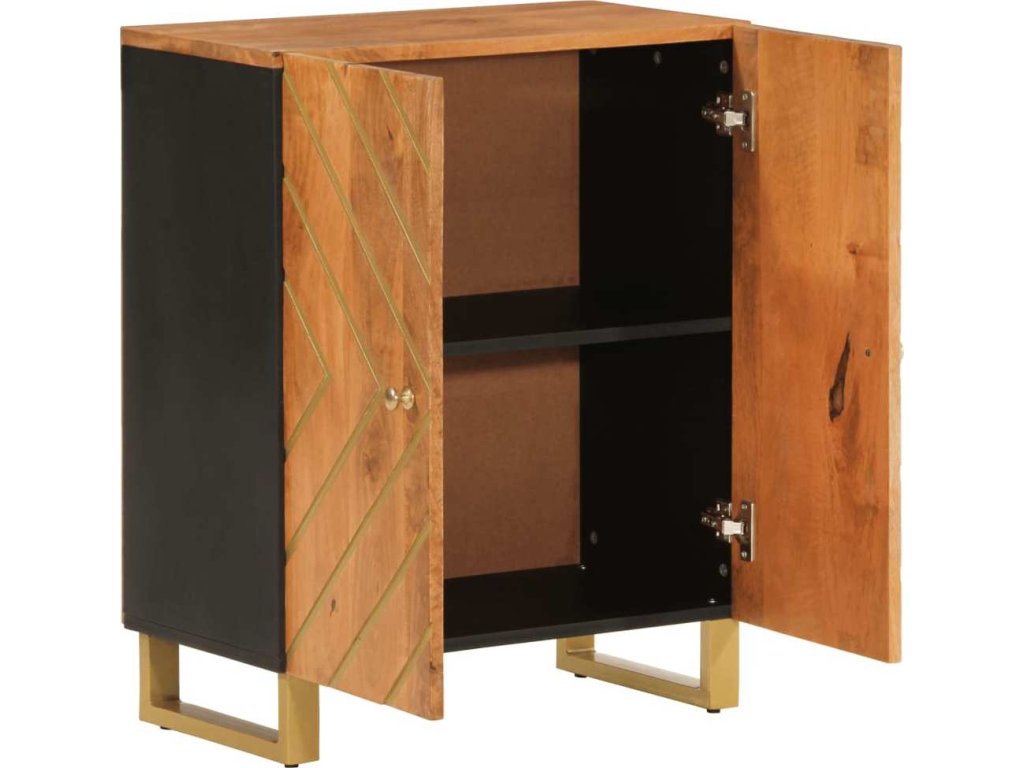 - Masivní mangovníkové dřevo: Masivní mangovníkové dřevo je pevné tropické tvrdé dřevo, ze kterého se vyrábí robustní nábytek. Krásná kresba dřeva propůjčuje každému kusu nábytku jeho jedinečný a od všech ostatních lehce odlišný vzhled. Skříňka je vyrobená z masivního mangovníkového dřeva, je tedy stabilní a odolná.