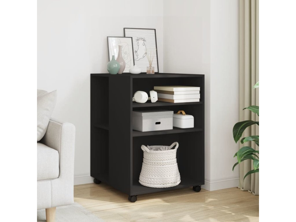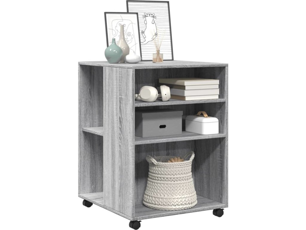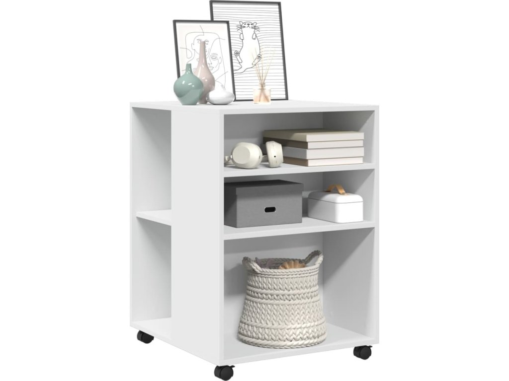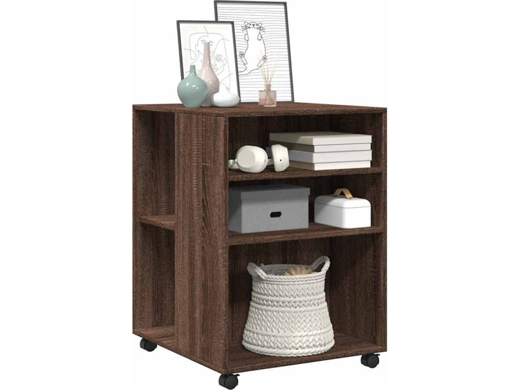 - Snadný pohyb: Tento odkládací stolek lze díky čtyřem otočným kolečkům, která jsou součástí dodávky, snadno přemístit na požadované místo. Dvě kolečka jsou uzamykatelná, což udržuje skříňku na místě a zvyšuje stabilitu.