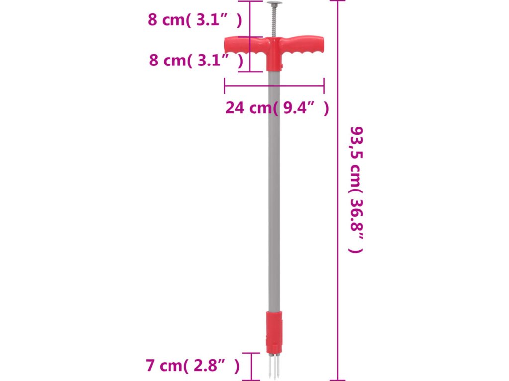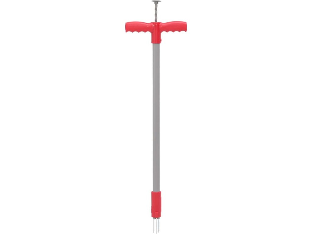 - Snadné použití: Postavte se do vzpřímené polohy, zatlačte nástroj do kořenů plevele, otočením rukojeti uchopte kořeny a vytáhněte je. Poté uvolněte tlačítko na horní straně rukojeti a odstraňte z nástroje plevel a zeminu.