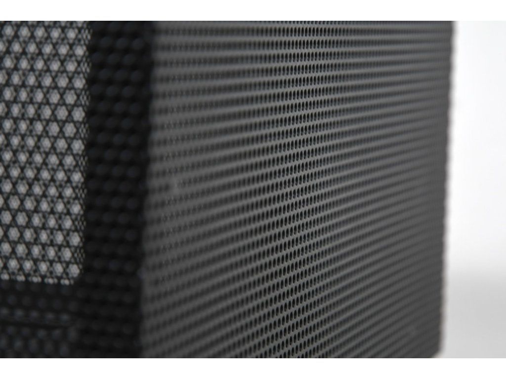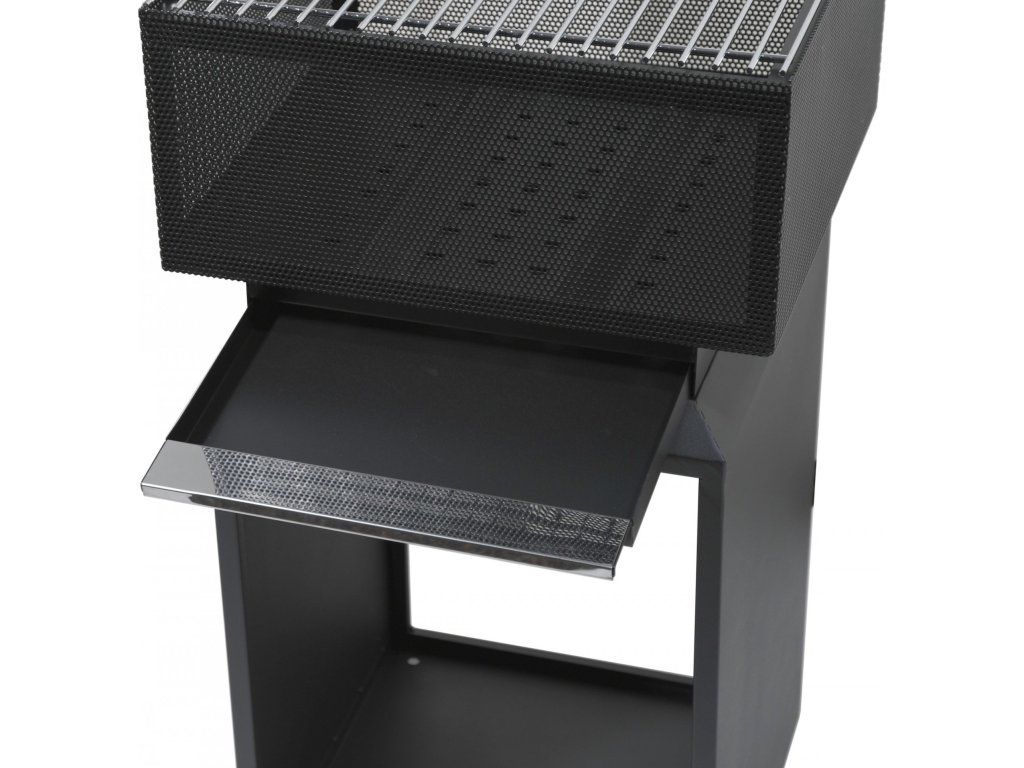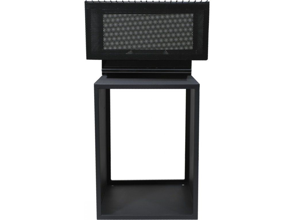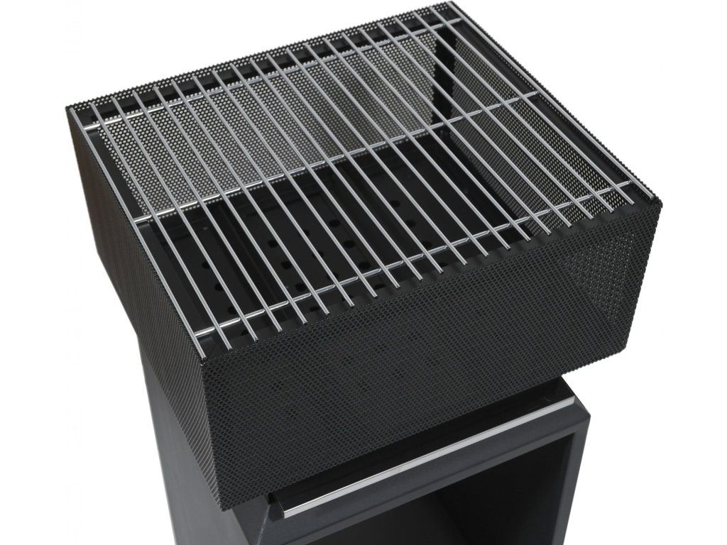 Čtvercová konstrukce ohniště se vyrábí z kvalitní oceli s vysokoteplotním černým nátěrem. Jeho strany jsou perforované a poskytnou vám unikátní pohled na hořící oheň. Dolní část využijete jako úložný prostor na dříví.