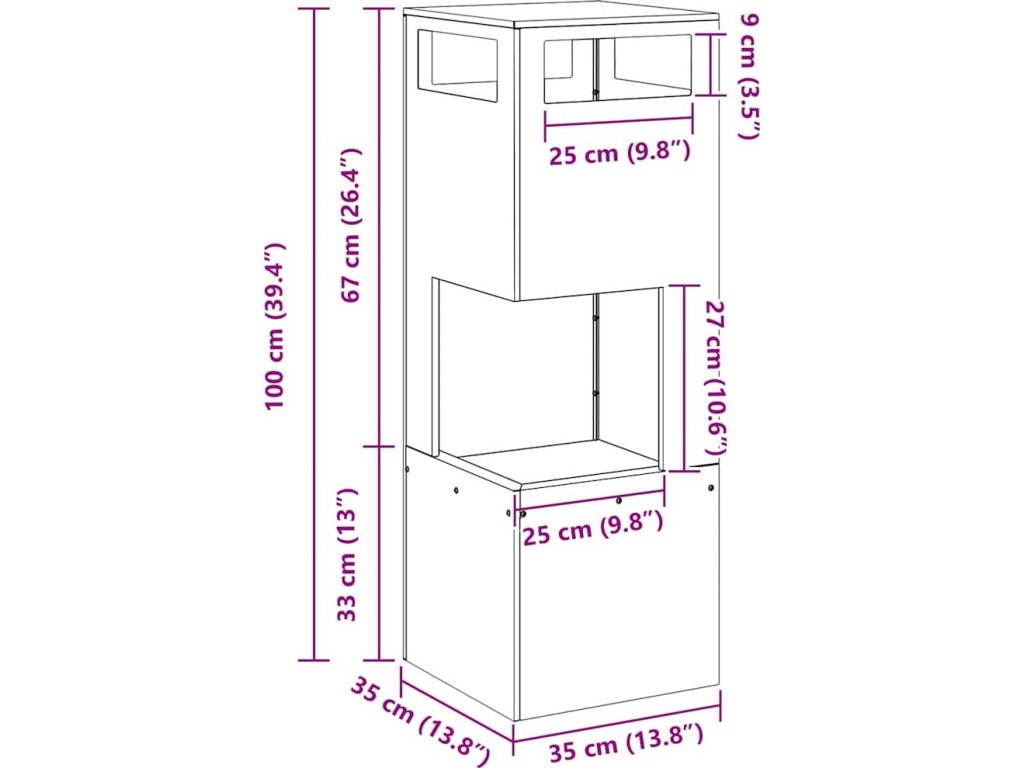 - Celkové rozměry: 35 x 35 x 100 cm (D x Š x V)