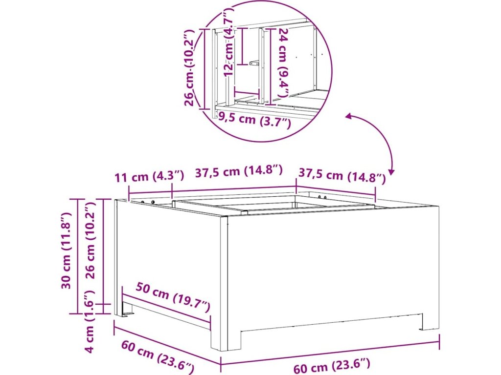 - Celkové rozměry: 60 x 60 x 30 cm (D x Š x V)