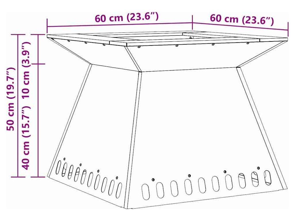 Toto moderní čtvercové ohniště na dřevo spojuje styl s praktickou stránkou, čímž udělá z vašeho venkovního prostoru parádní místo pro sleziny. Se svým elegantním a jednoduchým designem vás nejen zahřeje, ale stane se i skvělým centrem vaší zahrady nebo terasy.