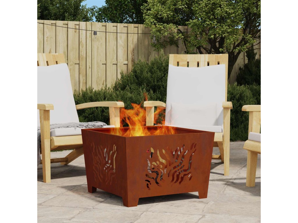 Toto moderní čtvercové venkovní ohniště dodá příjemnou atmosféru na váš balkon nebo terasu. Je vyrobené z odolné, tepelně rezistentní oceli a jeho elegantní design spojuje praktické funkce s moderním vzhledem. Skvělá volba na venkovní odpočinek a teplo.