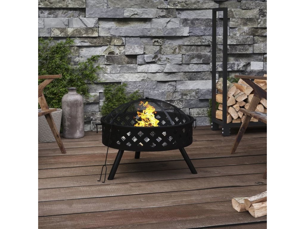- Praktický design: Toto ohniště je vybaveno velkou a hlubokou mísou, která umožňuje rozdělat velký oheň, který si vy i vaše rodina můžete užívat po dlouhé hodiny. Síťový kryt je navíc vybaven praktickým kroužkem, takže jej můžete snadno přenášet.