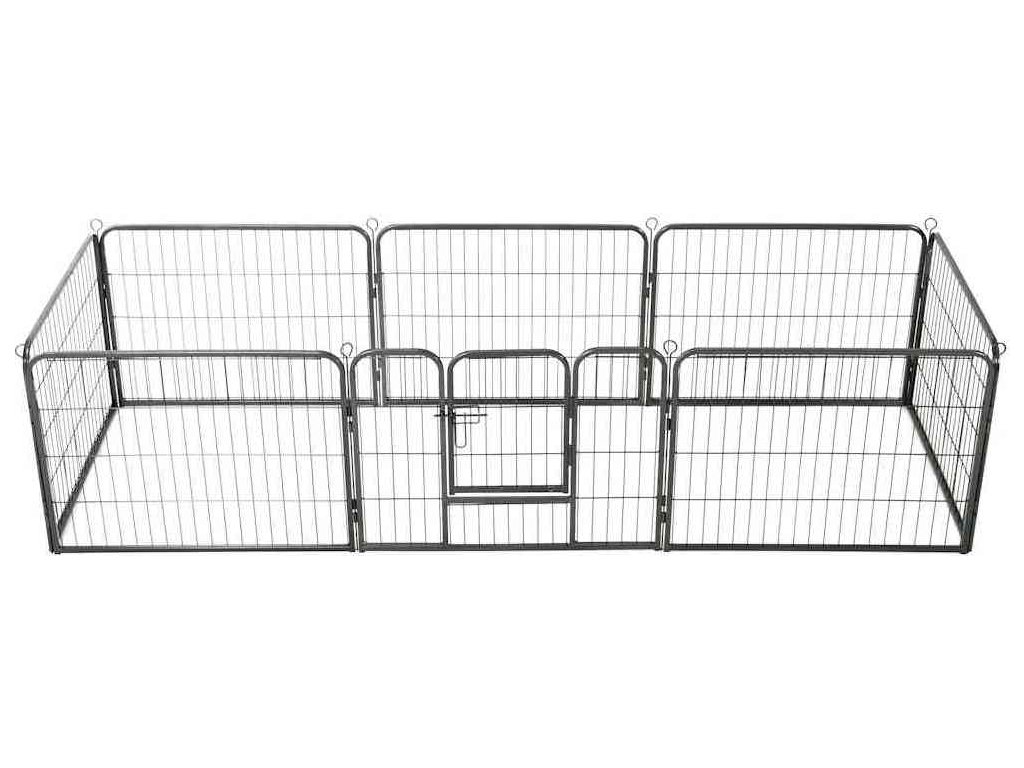 Psí výběh se dá snadno rozložit nebo složit. Skládá se z 8 vysoce odolných panelů, přičemž každý panel lze snadno připojit k dalšímu, což vám umožní stavět ohrádku do různých tvarů. Výběh je opatřen závěsnými dvířky s bezpečnostní západkou, jež zajišťují snadný přístup. Ohrádka je pevná, odolná vůči povětrnostním vlivům a vyrobená z rezuvzdorné oceli s práškovým nástřikem, takže je vhodná pro venkovní i vnitřní použití. Součástí dodávky jsou i kolíky pro upevnění k zemi, které zajišťují bezpečnost ohrádky pro psy a dodávají jí stabilitu.