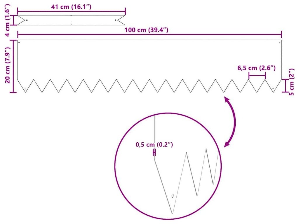 Tento zahradní obrubník je stylové a čisté řešení, jak vymezit prostory venku. Skvěle se hodí na zahrady a terasy a pěkně odděluje trávník, květinové záhony a chodníky, což vytváří úhlednou a příjemnou krajinu. Elegantní design se snadno hodí k různým stylům venkovního dekoru a zlepšuje celkový vzhled vaší zahrady, přičemž usnadňuje údržbu.