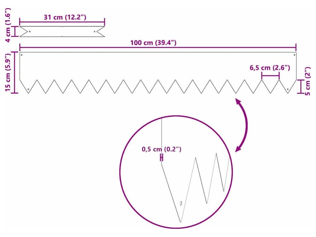 Tento zahradní obrubník je stylové a čisté řešení, jak vymezit prostory venku. Skvěle se hodí na zahrady a terasy a pěkně odděluje trávník, květinové záhony a chodníky, což vytváří úhlednou a příjemnou krajinu. Elegantní design se snadno hodí k různým stylům venkovního dekoru a zlepšuje celkový vzhled vaší zahrady, přičemž usnadňuje údržbu.