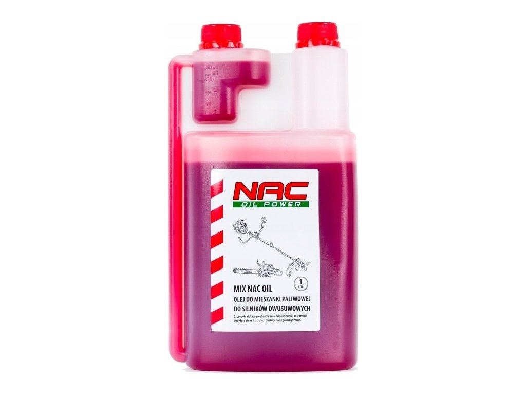 Olej do palivové směsi od značky NAC o objemu 1 l je určený pro různé zahradní stroje a nářadí, které jsou vybavené dvoudobým motorem. Využijete ho tedy do sekačky na trávu, pily, kultivátoru, nůžek na živý plot a dalších zařízení.