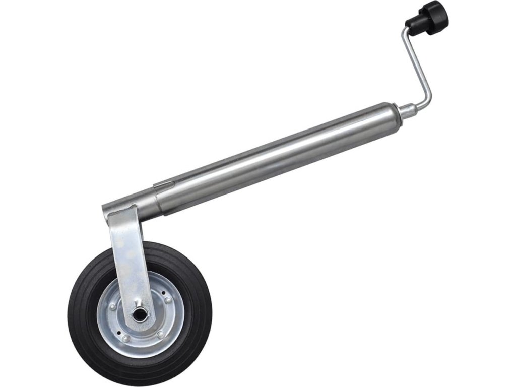 - Opěrné kolo: Je vyrobeno z vysoce kvalitní pozinkované oceli, je odolné proti korozi a robustní s maximální nosností 150 kg, takže je vhodné pro použití s malými až středně velkými přívěsy a karavany. Pevná gumová pneumatika pomáhá po nasazení kola snadno pohybovat s přívěsem.