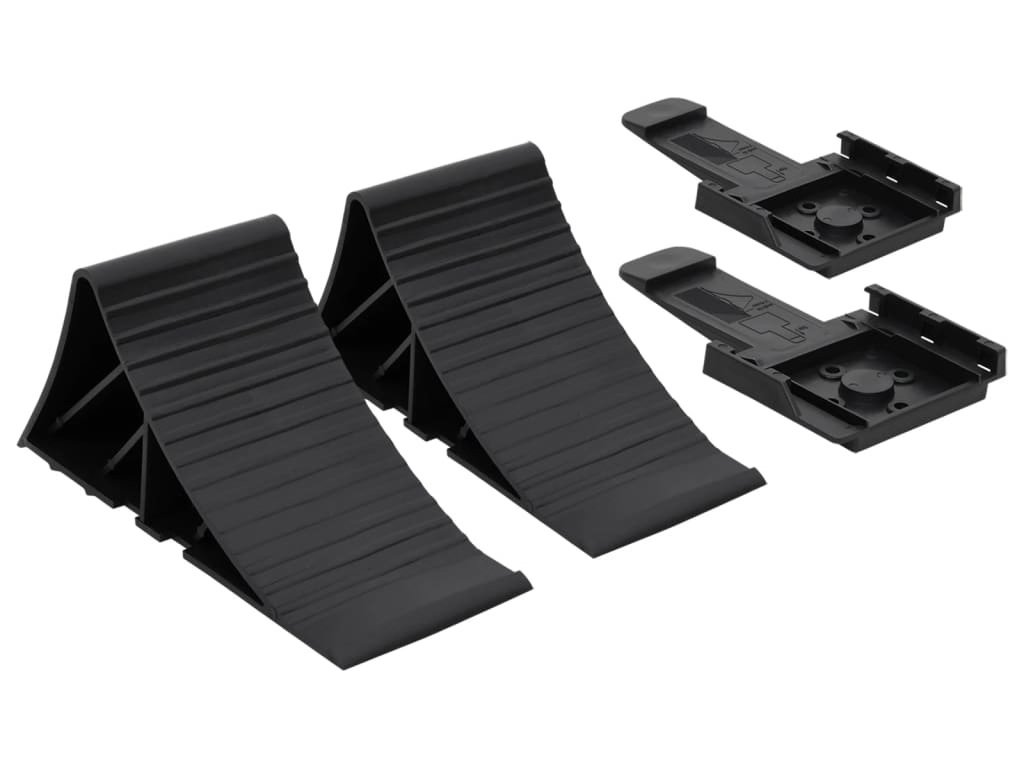 - Klíny pod kola: Důmyslná konstrukce těchto klínů napomáhá jejich snadnému zasunutí v ideálním úhlu. Žebrovaný povrch zajišťuje lepší přilnavost kol, což vám umožňuje udržet auto na místě a zajistit maximální bezpečnost.