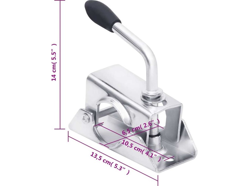 - Praktická dělená svorka: Dělená svorka je na konci rukojeti vybavena gumovou rukojetí pro snadnější manévrování. Pro otevření nebo zavření svorky stačí šroubovat ve směru nebo proti směru hodinových ručiček. Snadno se otevírá pro rychlé odstranění podpěrných stojanů a opěrných kol, takže proces instalace i demontáže je plynulý a efektivní.