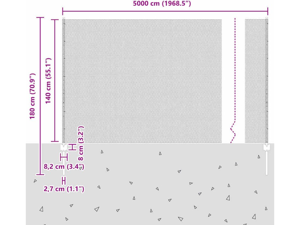 - Celkové rozměry: 5000 x 2,7 x 140 cm (D x Š x V)