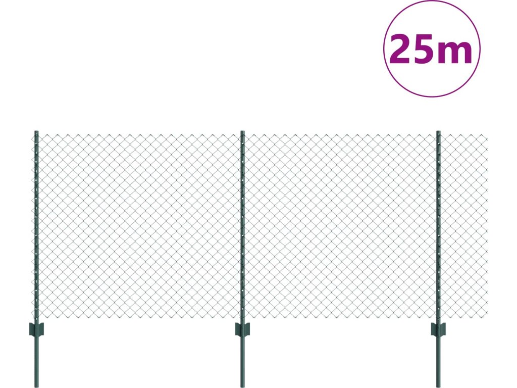 Plot s sloupkem Zelená 1 x 25 m Ocel a PVC [3336248]