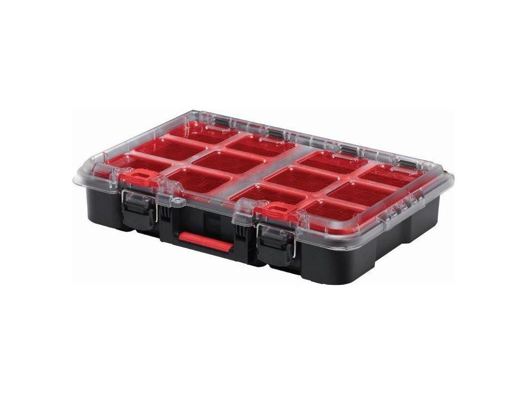 Skládá se ze 2 oddílů, do kterých umístíte drobné součástky, doplňky a jiné řemeslné potřeby. Přihrádky se dají vyjmout, čímž zvětšíte úložný prostor. Poté snadno do boxu uložíte i větší nářadí. Kovové spony zajistí pevné uzavření víka. Obsah organizéru se vám tedy nevysype a zůstane v bezpečí. Rukojeť vám navíc zjednoduší přenášení boxu.