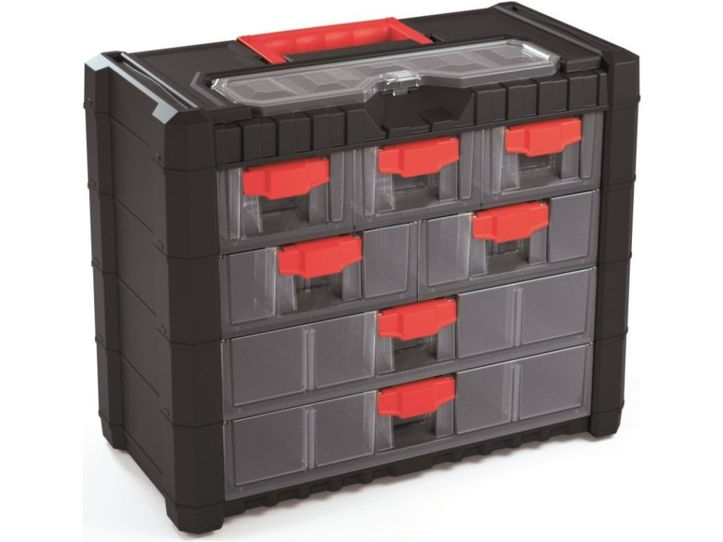 Nemůžete najít vhodné místo pro své nářadí? Válí se všude kolem a začíná to vadit vám nebo vaší druhé polovičce? Skříňka CARGO vyřeší váš problém s nedostatkem úložného prostoru a přijde vhod každému kutilovi. Se 7 zásuvkami snadno uschováte své náčiní a vždy ho budete mít nablízku. Praktická rukojeť usnadní přepravu nářadí kamkoliv budete potřebovat. Speciální ochrana chrání zásuvky před samovolným vypadnutím ze skříňky. Tento organizér se dá zavěsit na stěnu vaší dílny, garáže nebo skladu, čímž ušetříte ještě více místa.