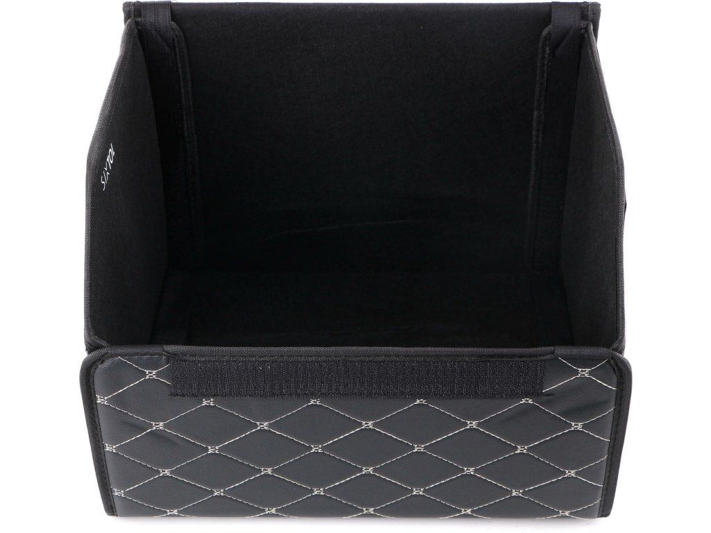 Pokud organizér zrovna nepotřebujete, rozložíte ho a snadno uskladníte. Ušetříte tím prostor v autě. Díky koženému designu se vzorovým šitím vypadá organizér luxusně. Kvalitní povrch z umělé kůže kdykoliv snadno omyjete. Navíc je pevný a odolný.