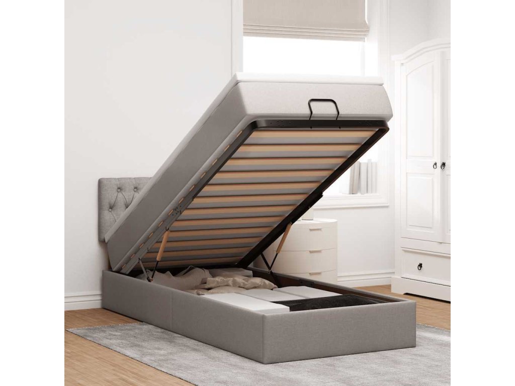 Tato postel s otomanem dokonale spojuje moderní estetiku s praktickou funkčností a nabízí vám jak řešení úložného prostoru, tak pohodlné spaní.