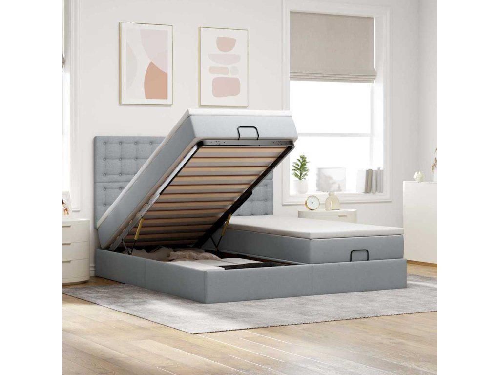 Použijte tento otomanský rám postele s matracemi a užijte si klidný spánek! Nabízí vám úložné řešení i pohodlný spánek.