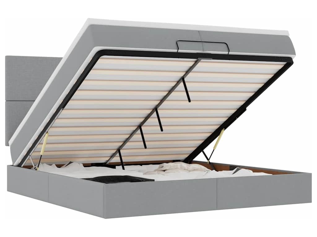 - Dostatek úložného prostoru pod postelí: Díky hydraulickému zvedacímu mechanismu nabízí rám postele dostatek úložného prostoru pod postelí, čímž maximalizuje prostor, aniž by zabíral další podlahovou plochu. Jednoduchým zatažením za rukojeť se roštová základna hladce zvedne a umožní vám rychle a bez námahy vyndat vaše věci.