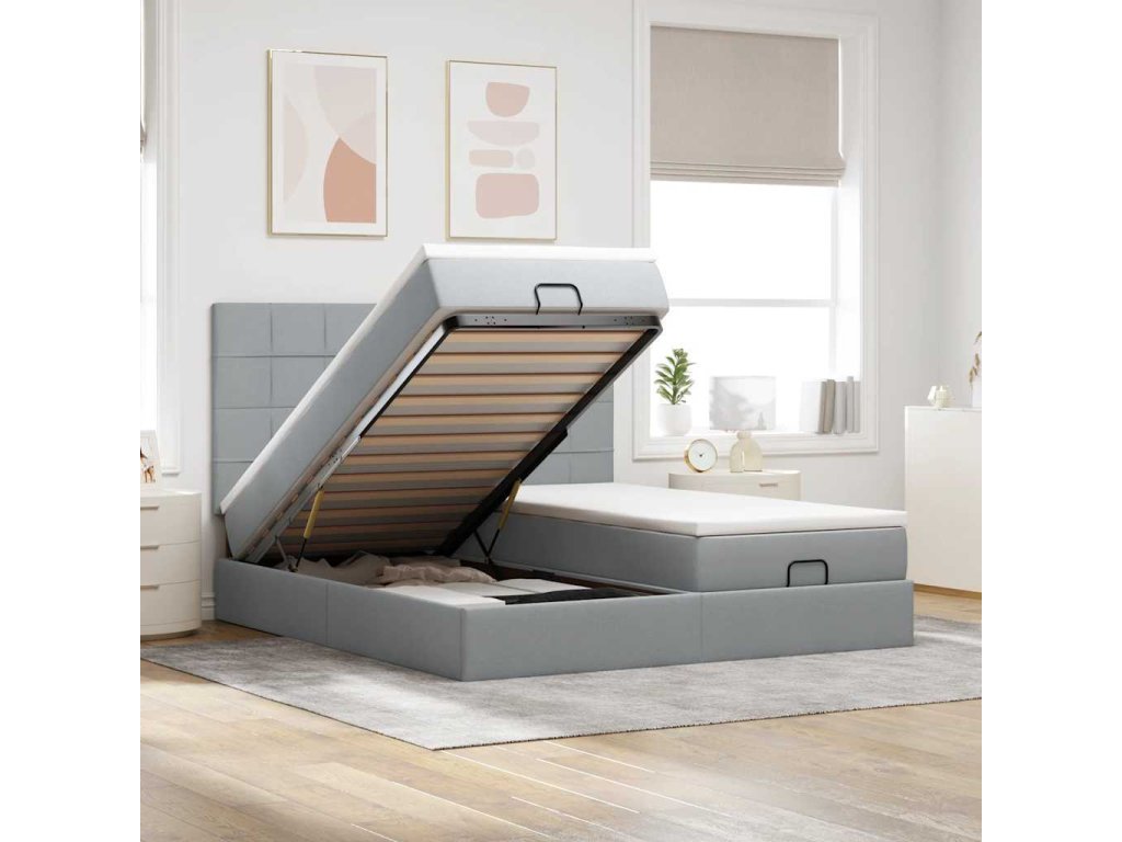 Použijte tento otomanský rám postele s matracemi a užijte si klidný spánek! Nabízí vám úložné řešení i pohodlný spánek.