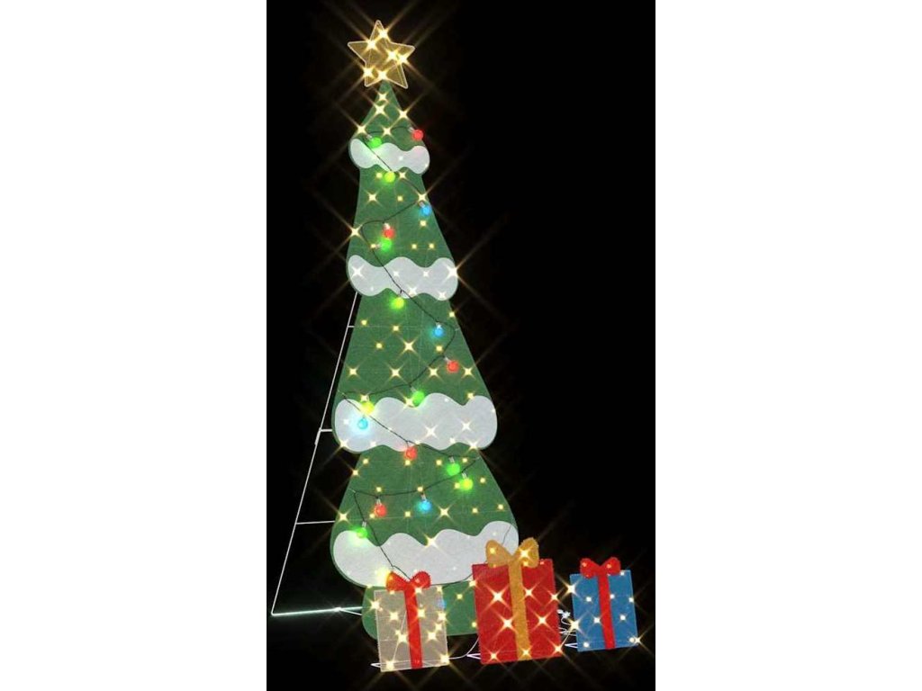 Tento vánoční stromeček s osvětlením a třemi dárkovými krabicemi dodává sváteční atmosféru kombinací moderního stylu a tradičního vánočního kouzla. Ideální na obývák, zahradu nebo terasu, přináší radost a pohodu díky jemným LED světly a krásným ozdobám, perfektní pro rodinné oslavy a setkání.