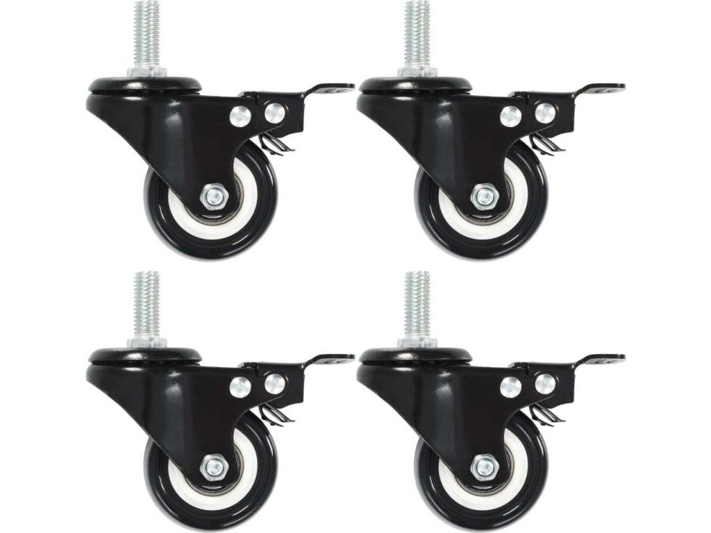 Kolečka jsou vyrobena z PP (polypropylenu), který je známý pro svou schopnost pohlcovat nárazy a vibrace. Ať už tedy kolečka namontujete na cokoliv, budete to moci přesouvat hladce a v tichosti. Jejich hladký povrch navíc ochrání vaši podlahu před poškrábáním. Ocelový rám je odolný proti rzi, a tudíž kolečkům dodává na odolnosti a prodlužuje jejich životnost. Otočná kolečka jsou navíc vybavena brzdou pro flexibilnější ovládání. Každé kolečko má maximální nosnost až 50 kg.