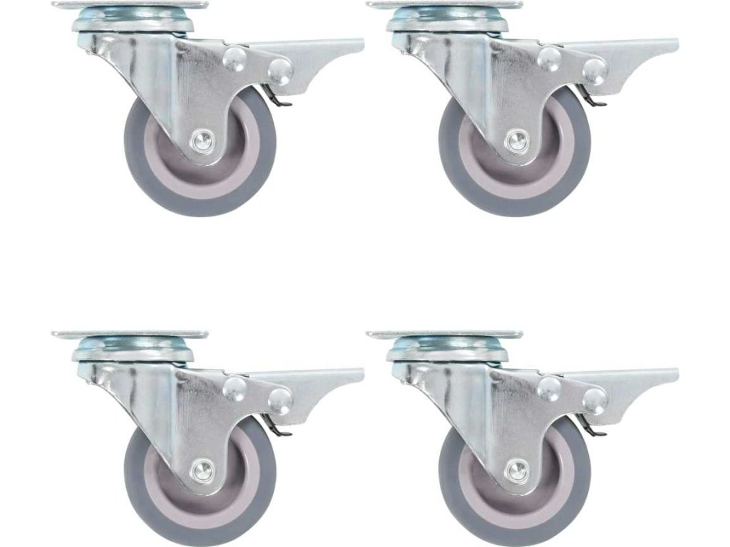 Kolečka jsou vyrobena z TPR (termoplastické gumy), která je známá pro svou schopnost pohlcovat nárazy a vibrace. Ať už tedy kolečka namontujete na cokoliv, budete to moci přesouvat hladce a v tichosti. Jejich hladký povrch navíc ochrání vaši podlahu před poškrábáním. Zinkem potažený ocelový rám je odolný proti rzi, dodává kolečkům na odolnosti a prodlužuje jejich životnost. Otočná kolečka jsou vybavena dvojitou brzdou pro flexibilnější ovládání. Každé kolečko má maximální nosnost až 35 kg.