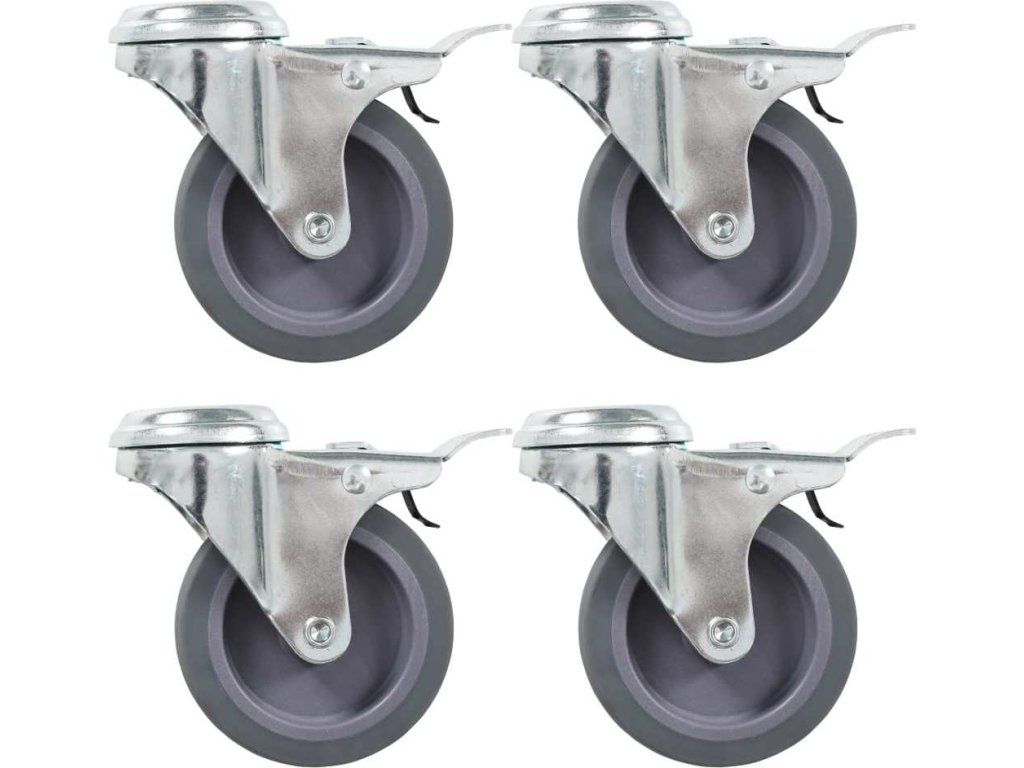 - Balení obsahuje 4 otočná kolečka s otvorem pro šroub a dvojitou brzdou