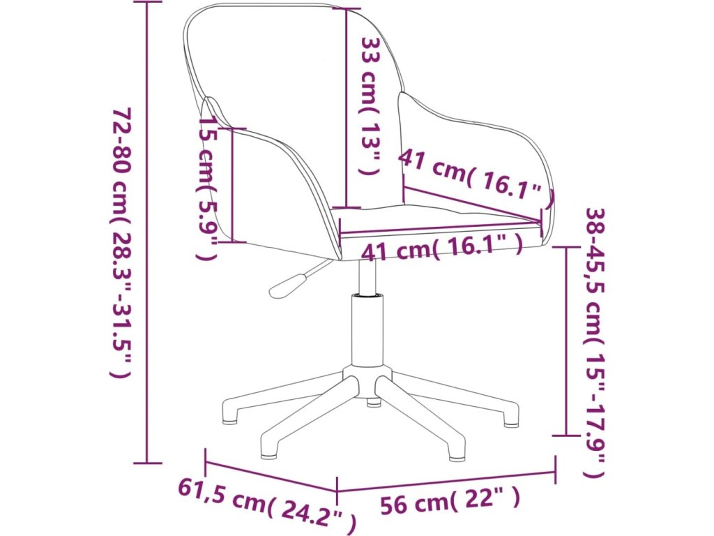 - Celkové rozměry: 56 x 61,5 x (72–80) cm (Š x H x V)