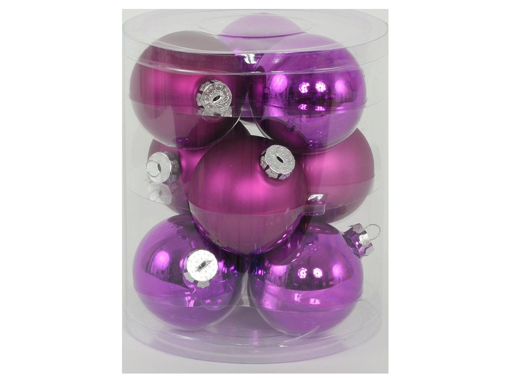 Skleněné kulaté vánoční ozdoby na pověšení ve fialových barvách o průměru 7 cm, rozzáří váš stromek i interiér. Balené jsou v PVC boxu po 9 kusech a dodají vaší výzdobě sofistikovaný lesk a kouzlo. Perfektní pro vytvoření sváteční atmosféry, ať už zdobíte stromeček nebo jiná místa ve vašem domě.
