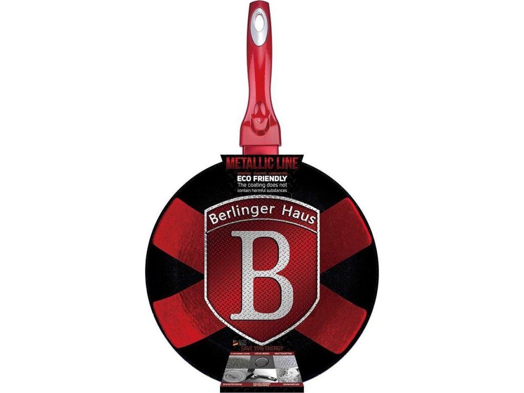Univerzální pánev Berlingerhaus BH-1253 Burgundy Metallic Line s průměrem 28 cm vás určitě nadchne svým atraktivním designem a všestraným využitím. Vnitřní i vnější vrstva pánve neobsahují žádné škodliviny, výsledné pokrmy tak neztrácí vařením žádné vitamín. Zároveň je vhodná pro zdravé vaření s minimem tuku nebo oleje, v závislosti na použitých surovinách klidně i bez jediné kapky tuku. Součástí balení je i chránič povrchu pánve.