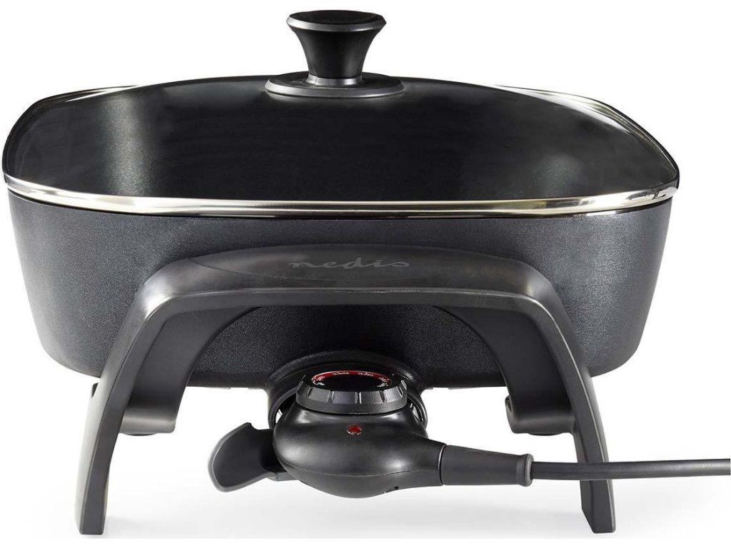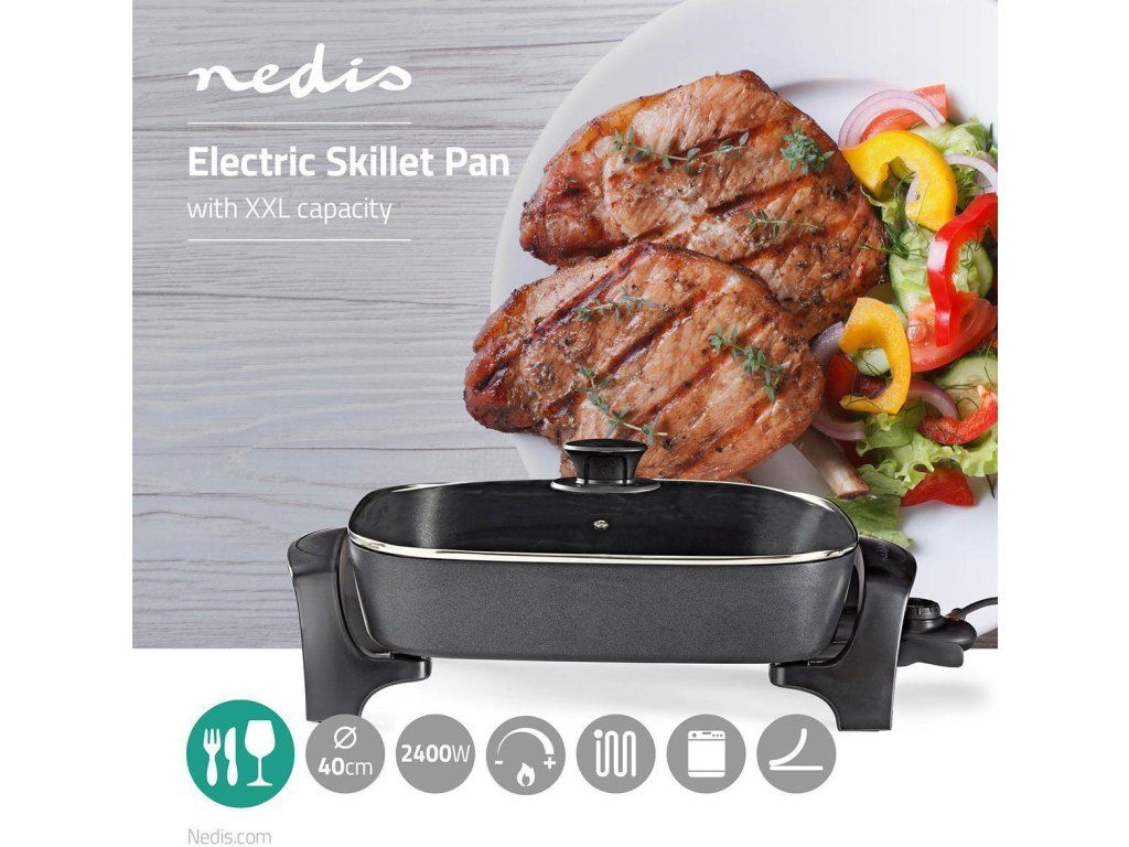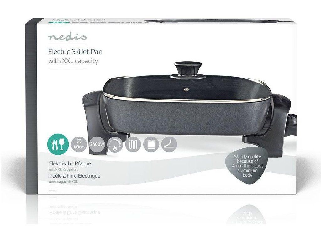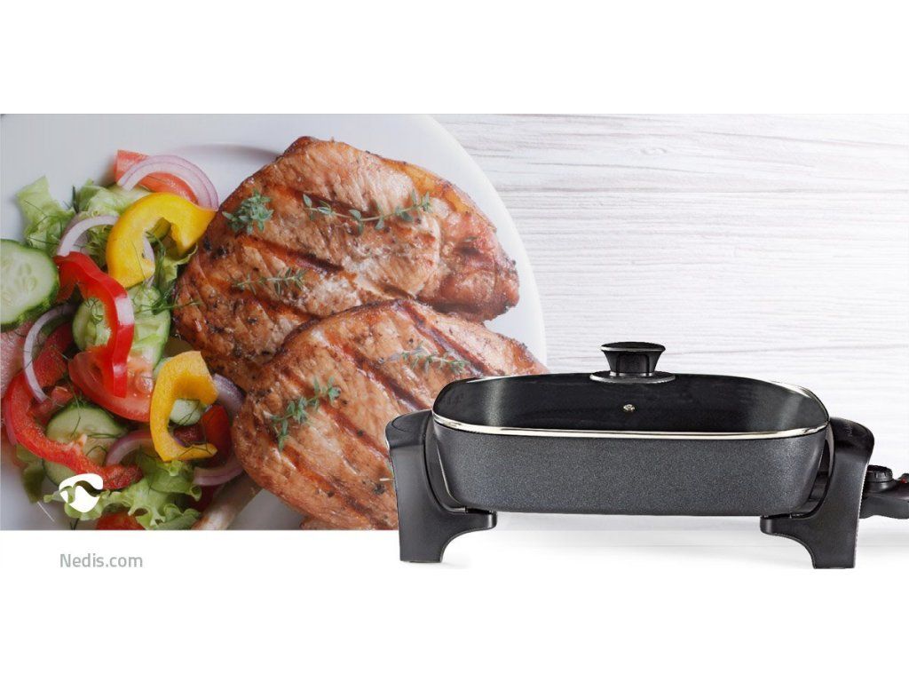 Elektrická pánev Nedis patří mezi univerzální spotřebiče do vaší kuchyně. Využijete ji pro vaření, pečení, dušení, smažení i restování. Díky velkému objemu v ní připravíte v podstatě jakékoliv jídlo. Vejde se do ní totiž až 7 l vody. Pro pánev najdete využití, ať už vaříte maso, zeleninu nebo cokoliv jiného.