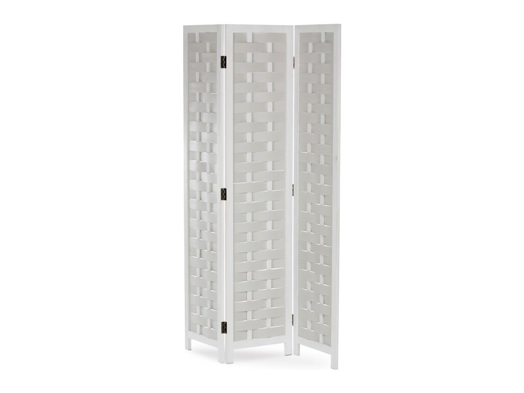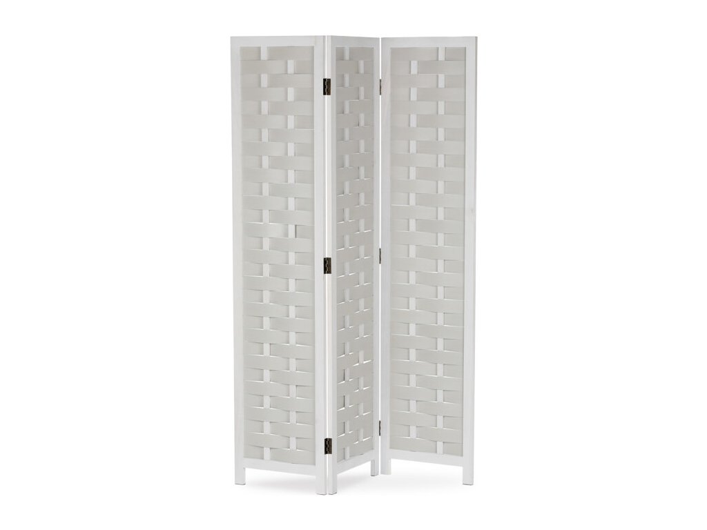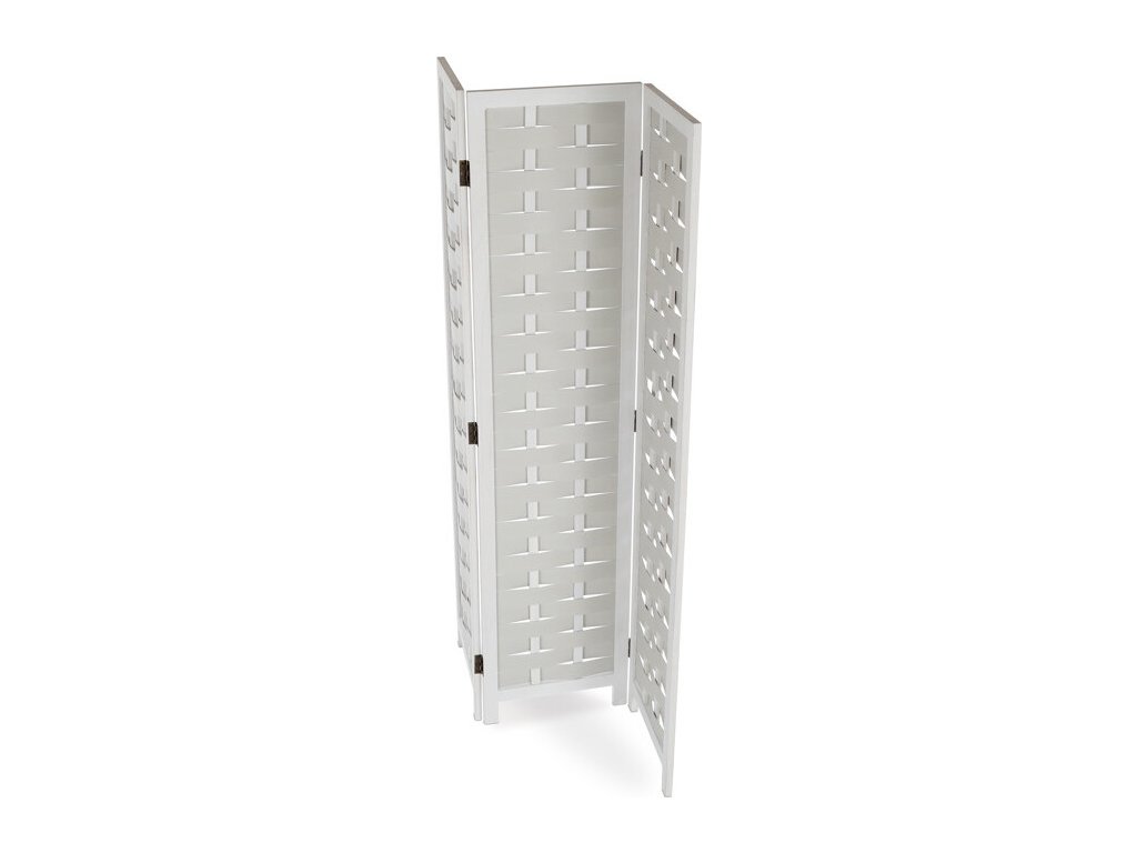 Třídílný paraván vyrobený z masivního smrkového dřeva v bílé barvě nabízí praktické řešení pro rozdělení prostoru i dekorativní doplněk interiéru. Každá z částí je spojena kovovými panty, které umožňují snadné skládání a nastavení úhlu podle potřeby. Povrchová úprava zdůrazňuje přirozenou strukturu dřeva a zároveň usnadňuje údržbu. Paraván je stabilní a díky masivnímu provedení navržen pro dlouhou životnost. Je vhodný do různých typů interiérů, kde přispívá k vytvoření soukromí nebo optickému oddělení zón. Rozměr jednoho dílu 40x171cm.