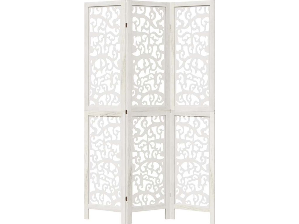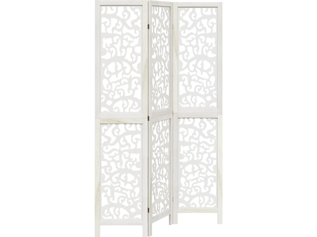 Paraván 3dílný bílý masivní dřevo pavlovnie [358734]