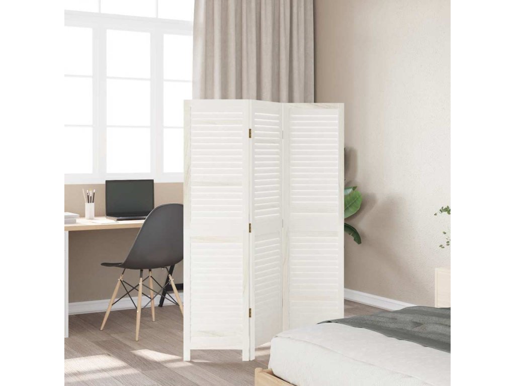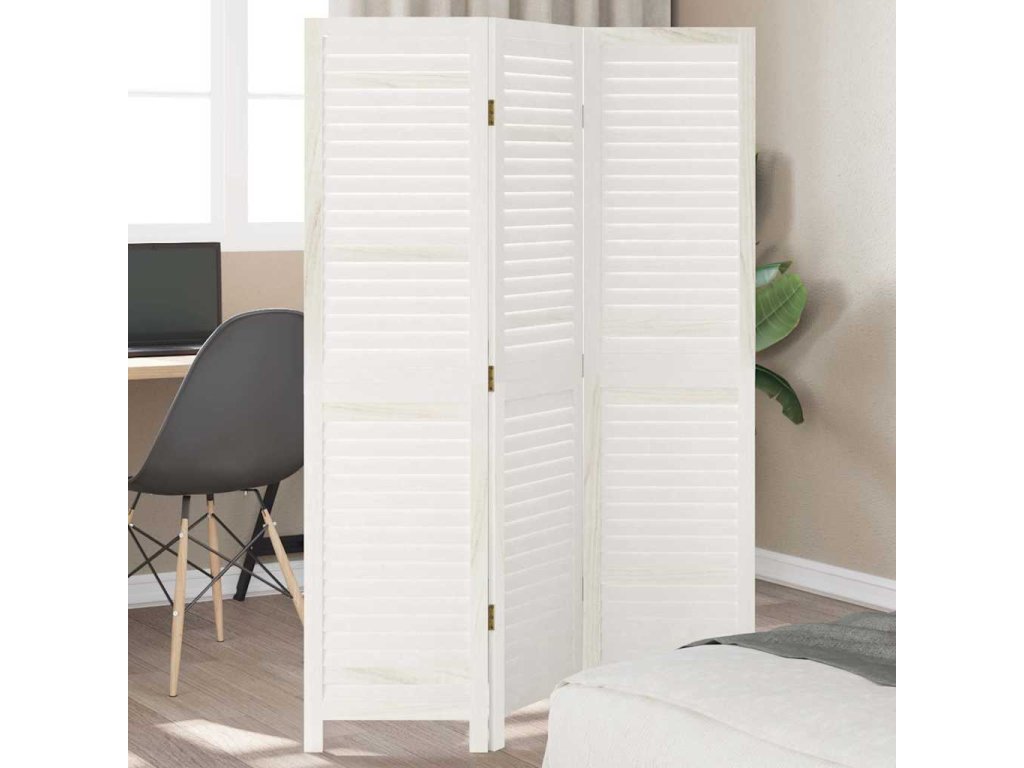 Paraván 3dílný bílý masivní dřevo pavlovnie [358829]