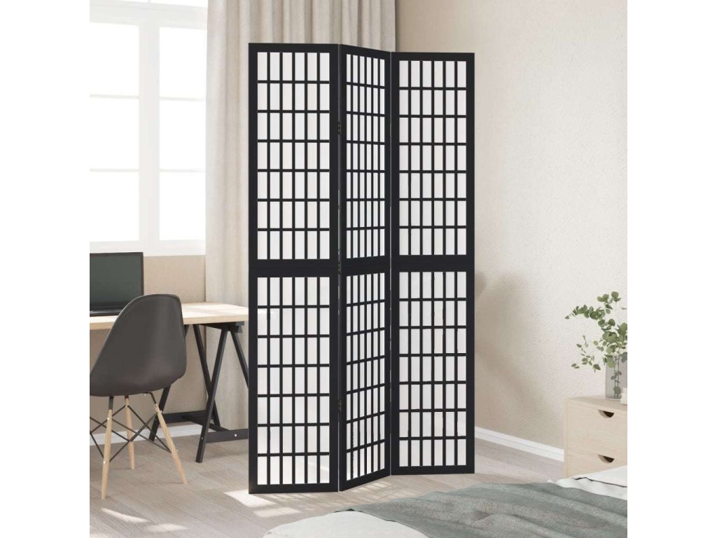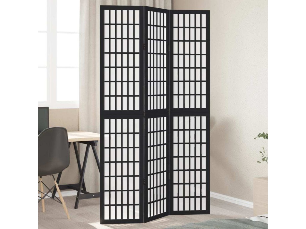 Paraván 3dílný černý masivní dřevo pavlovnie [358767]