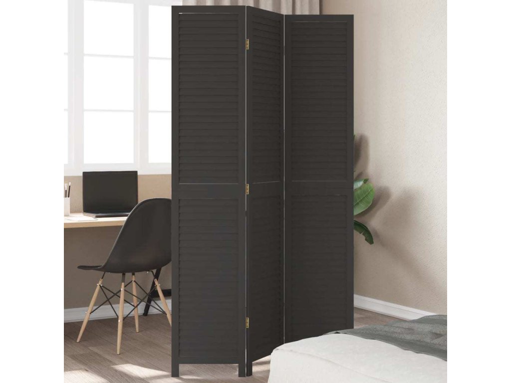 Paraván 3dílný černý masivní dřevo pavlovnie [358847]