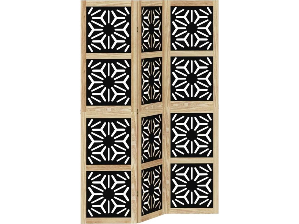 - Atraktivní vzhled: Tento skládací paraván s geometrickým výřezem dodává prostoru charakter a dekoraci.
