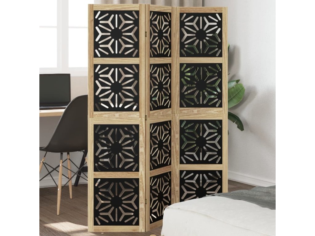Paraván 3dílný hnědý a černý masivní dřevo pavlovnie [358797]